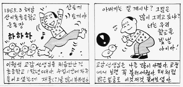 내가 선생님을 처음 뵌 것은 1965년 3월이었다. 나는 그때 지금은 사라지고 없는 산이동초등학교 1학년이었다. 교감 선생님은 원래 수업을 맡지 않는데, 이 분은 수업에 자주 들어왔다.