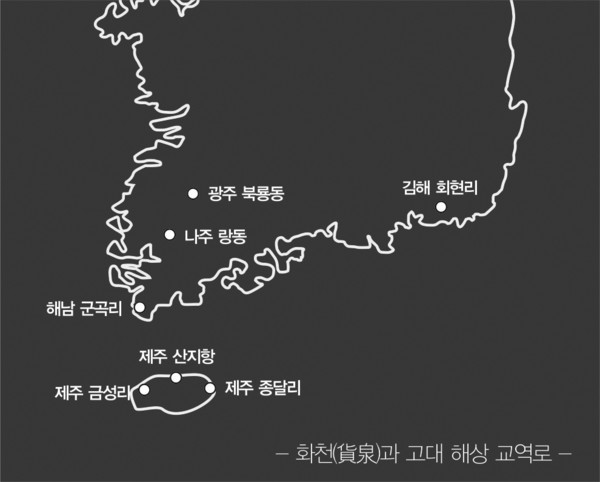 그런데 왕망이 만든 화천(貨泉)이 마한권역인 서해안과 가야권역인 남해안 지역, 제주도와 일본 규슈지역에서 출토되면서 고대 해상루트의 지표로 떠오르게 됐다.