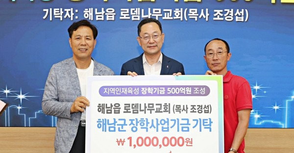 해남읍 로뎀나무교회 조경섭 목사가 지난 14일 해남군 장학사업기금 500억 조성에 100만원을 보탰다. 화산면 출신인 조경섭 목사는 해남씽크를 경영하면서 목회 활동을 하고 있는데 어려운 가정을 방문해 무료로 씽크대를 교체해 주고, 해남서초와 해남중학교 등굣길 교통 봉사로 지역사랑을 선보이고 있다.