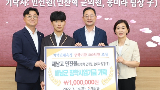 해남고등학교 민진원 학생이 본인이 받은 성적 우수 장학금 전액을 해남군 장학사업기금에 기탁했다.