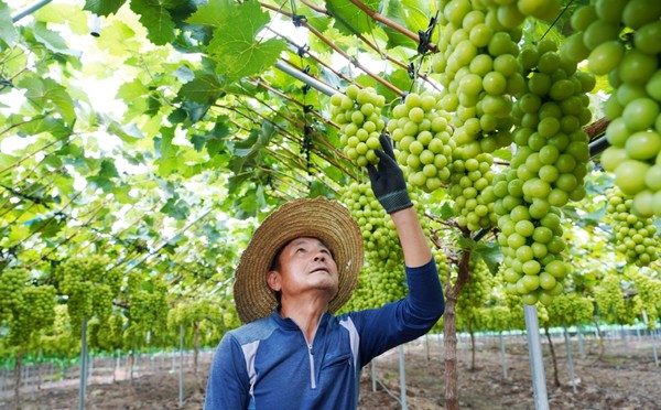 추석을 앞두고, 땅끝해남의 샤인머스켓이 본격 수확되고 있다.