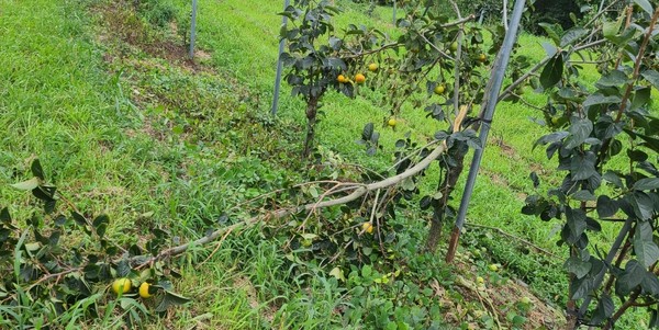 김광석씨는 “태추감은 크기가 크고, 수확을 앞둬 바람 피해가 더욱 컸다. 수확해야 할 감 30%가 떨어졌고 특히 가격이 비싼 태추감이 떨어져 손해도 많다”며 “감잎도 많이 떨어졌고 나무가 부러져 걱정이 이만 저만이 아니다”고 말했다.
