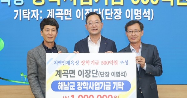 계곡면이장단(단장 이명석)에서 해남군 장학사업기금에 100만원을 기탁했다.