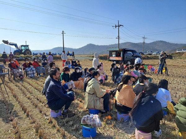 지난 11월26일 현산학의마을공동체(대표 김대원)가 마련한 ‘하하호호 이야기할배 마을축제’는 추수가 끝난 논에서 열렸는데 이날 마을주민들의 맛깔스러운 연기에 관객들은 뜨거운 호응으로 답했다.