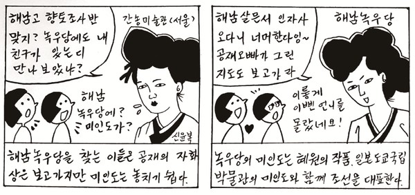 미인도의 원본은 녹우당에 보관해 왔는데, 도난됐다가 되찾은 뒤로는 국립박물관으로 옮겨갔다. 이 미인이 친정(!)인 해남 녹우당으로 돌아올 날을 손꼽아 기다리는 해남 사람들이 많다.