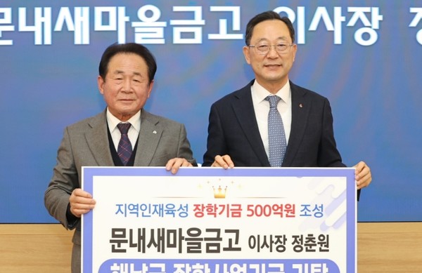 문내면 새마을금고(이사장 정춘원)가 지난 1월31일 해남군 장학사업 기금에 100만원을 기탁했다.