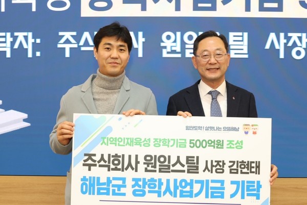 주식회사 원일스틸 김현태 사장이 지난 1월31일 해남군 장학사업기금에 100만원을 보태 500억원 장학기금 조성운동에 동참했다.