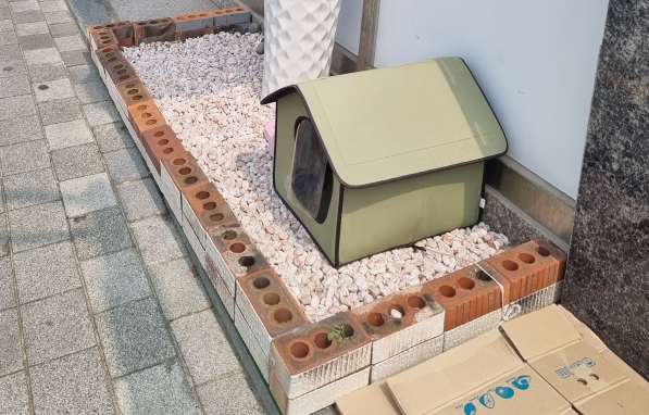 해남군민광장 농구장 맞은편에 위치한 커피숍 미니상회 앞엔 길냥이인 미남이를 위한 집이 있다. 처음 미남초밥에서 밥을 줬다고 해 미남이라 이름 지어진 미남이는 이곳 골목 상인들이 키우고 있다. 그런데 새끼까지 밴 미남이가 곱게 마련해준 집보단 늘 밖으로만 나돌아 걱정이 크단다.
