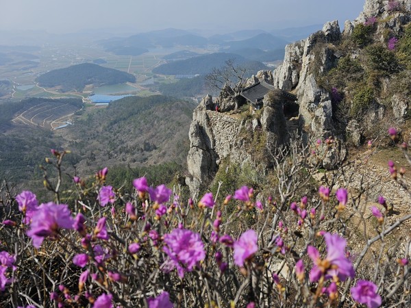 공룡의 등뼈같은 기암괴석이 가파른 자리, 다도해를 건너온 봄바람에 바위틈마다 진달래 연분홍빛이 물들어 간다. 가느다랗게 이어진 산길의 마지막, 정상인 듯 싶은 하늘 끝, 불현듯 암자가 나타났다.