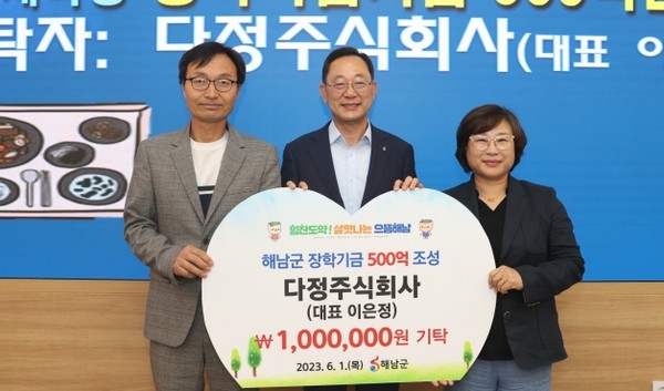 다정 주식회사(대표 이은정)는 예비사회적 기업 지정 및 매일시장 입주를 기념해 100만원을 기탁했다. 해남우리신문 webmaster@hnwoori.com 다른기사 보기 저작권자 © 해남우리신문 무단전재 및 재배포 금지 당신만 안 본 뉴스 명찰보고 너 누구구나…55년 만에 재회 | 뿌리깊은 해남이야기 97 | 해남 땅이름 유래 (8) 북일면편 내년 지방선거, 도의원 선거구 바뀌나 곧 터질거라 했다… J프로젝트 관광도시 대통령도 움직였다 대대적인 노선 개편, 서부권 목포 구간 증설 요구 해남 청년들의 3중주 가을 음악회 가래떡·뻥튀기 나누며 우리쌀 소비운동 명찰보고 너 누구구나…55년 만에 재회 댓글삭제 삭제한 댓글은 다시 복구할 수 없습니다. 그래도 삭제하시겠습니까? 비밀번호 닫기 기사 댓글 0 댓글 접기 로그인 후 이용 가능합니다. 댓글 내용입력 비회원 로그인 이름 비밀번호 댓글 내용입력 댓글쓰기 계정을 선택하시면 로그인·계정인증을 통해 댓글을 남기실 수 있습니다. 회원 로그인 비회원 글쓰기 이름 비밀번호 자동등록방지 로그인 옵션 창닫기 주요기사 읍 공동화 막자…12월 초 민관협의체 발족 448억 태양광 패널 재처리시설, 국비 100% 해달라 대대적인 노선 개편, 서부권 목포 구간 증설 요구 이병연 유기농 명인, 햅쌀 500kg 기탁 나의 직책은 마을청년회장, 윤채현 전 교장 토요일에 땅끝 오세요…흥겨운 음악에 수산물 직거래 장터