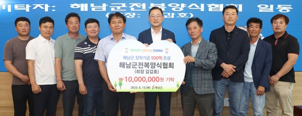 해남군전복양식협회(회장 김갑호)가 500억원 조성 장학사업 기금에 1,000만원을 기탁했다.