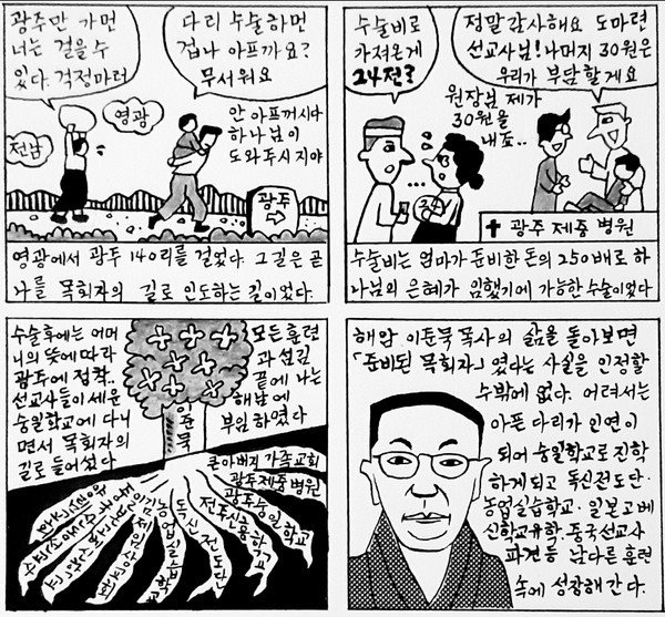 산동성으로 간 이준묵은 1939년 5월부터 3년간 걸인들을 보살피고 학교에 가지 못하는 아이들에게 문자를 가르쳤다. 중국에서 돌아온 뒤 광주양림교회 부목사로 재직하던 그에게 새로운 임지가 주어졌다. 그가 36년을 섬기게 될 해남읍교회였다. 때는 1945년 1월이었다. (● 35회 해남이야기 : 이준묵 목사와 등대원)