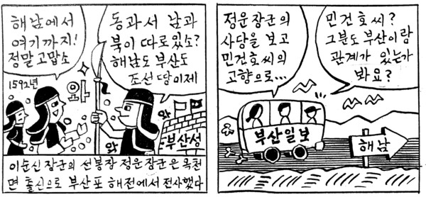 부산포 해전에서 이순신의 함대는 왜군을 크게 격파하지만 정운 장군은 전사한다. 선봉장으로 싸우다 안타깝게 희생된 것이다. 몰운대에 가면 정운장군의 순의비를 만날 수 있다.
