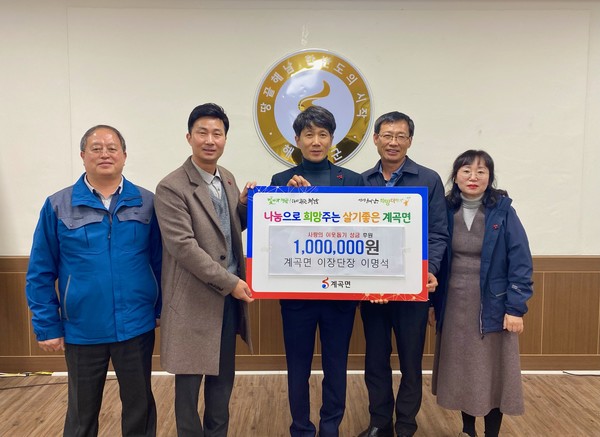 계곡면이장단 이명석 단장이 지난 12월14일 후원금 100만원을 계곡면 지역사회보장협의체에 기탁했다.