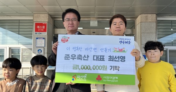 마산면 준우축산 최선영 대표가 마산면 취약계층 지원을 위해 전라남도사회복지공동모금회에 현금 100만원을 지정 기탁했다.