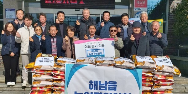 해남읍 농업경영인회는 20년 전부터 꾸준히 기부를 통한 이웃사랑을 실천하고 있다. 기탁된 쌀은 전남 사회복지공동모금회에 기탁 처리후 저소득 가정에게 배분될 예정이다.