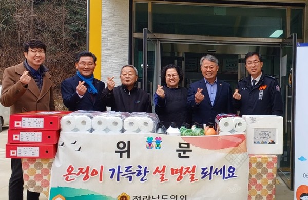 박성재 도의원이 지난 2월2일 송지면에 위치한 땅끝보금자리요양원을 찾아 시설관계자들을 위로하고 위문품을 전달했다.
