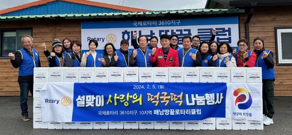 해남땅끝로타리클럽(회장 박남일)이 설명절을 맞아 떡국떡 나눔 행사를 펼쳤다.