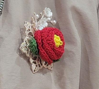 할머니들이 만든 어버이날 기획상품 동백꽃 브로치는 개당 8,000원에 판매되고 있다.
