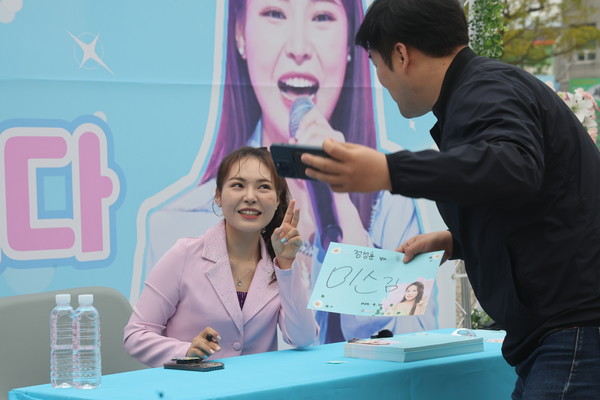 지난 4월30일 수성송 앞에서 미스김 팬 사인회가 열렸다. 군민들의 열띤 응원과 사랑을 받고 있는 미스김이 이날 해남 홍보대사로 위촉됐다. 해남우리신문 webmaster@hnwoori.com 다른기사 보기 저작권자 © 해남우리신문 무단전재 및 재배포 금지 당신만 안 본 뉴스 명찰보고 너 누구구나…55년 만에 재회 | 뿌리깊은 해남이야기 97 | 해남 땅이름 유래 (8) 북일면편 내년 지방선거, 도의원 선거구 바뀌나 곧 터질거라 했다… J프로젝트 관광도시 대통령도 움직였다 대대적인 노선 개편, 서부권 목포 구간 증설 요구 해남 청년들의 3중주 가을 음악회 가래떡·뻥튀기 나누며 우리쌀 소비운동 명찰보고 너 누구구나…55년 만에 재회 댓글삭제 삭제한 댓글은 다시 복구할 수 없습니다. 그래도 삭제하시겠습니까? 비밀번호 닫기 기사 댓글 0 댓글 접기 로그인 후 이용 가능합니다. 댓글 내용입력 비회원 로그인 이름 비밀번호 댓글 내용입력 댓글쓰기 계정을 선택하시면 로그인·계정인증을 통해 댓글을 남기실 수 있습니다. 회원 로그인 비회원 글쓰기 이름 비밀번호 자동등록방지 로그인 옵션 창닫기 주요기사 읍 공동화 막자…12월 초 민관협의체 발족 448억 태양광 패널 재처리시설, 국비 100% 해달라 대대적인 노선 개편, 서부권 목포 구간 증설 요구 이병연 유기농 명인, 햅쌀 500kg 기탁 나의 직책은 마을청년회장, 윤채현 전 교장 토요일에 땅끝 오세요…흥겨운 음악에 수산물 직거래 장터