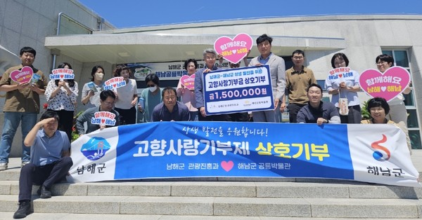 김성만 해남공룡박물관장은 “고향사랑기부제 상호기부에 동참해 주신 남해군 관광진흥과 직원들에게 감사한 마음을 전하며, 이번 기부를 통해 상생발전에 큰 도움이 되길 희망한다”고 밝혔다.