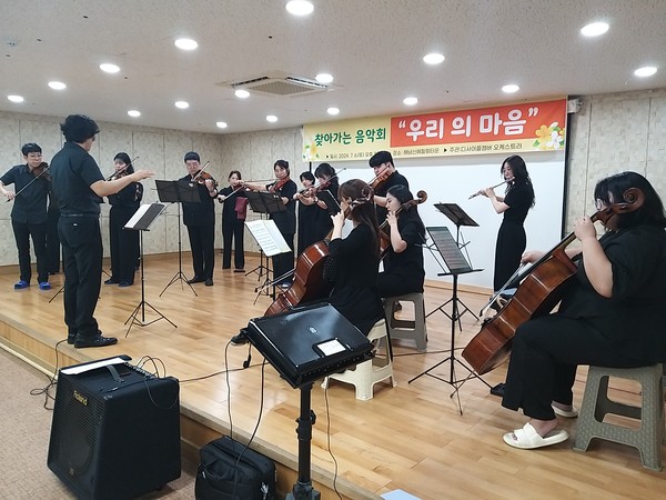 신혜힐링타운에 아름다운 음악이 찾아왔다. 지난 7월6일 디사이플챔버 오케스트라가 신혜힐링타운을 찾아 우리의 마음이란 주제로 음악회를 열었다. 이날 음악회에선 광주시립교향악단 상임멤버의 클래식 연주와 광주시립합창단의 성악 등 다채로운 음악이 연주됐다.