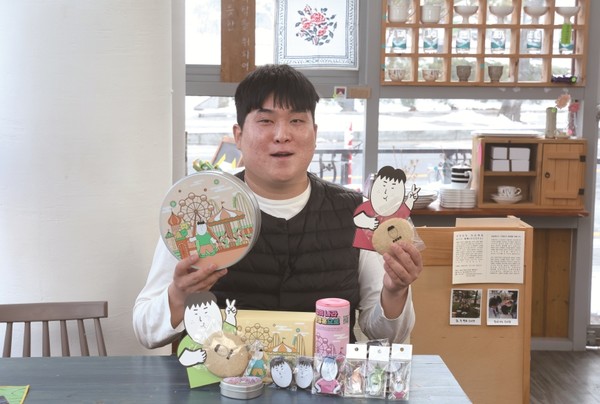 훈문정훈 문정훈(34) 대표는 자신의 얼굴과 쏙 닮은 캐릭터로 다양한 상품을 출시했다. 통통한 얼굴, 주근깨, 밋밋한 표정까지 얼굴을 그대로 담은 캐릭터에 고객들의 반응이 뜨겁다. 그립톡, 배추와 고구마 탈을 쓴 키링, 쿠키, 소품함, 티슈 등 다양한 제품마다 캐릭터의 몸과 얼굴탈이 달라진다.