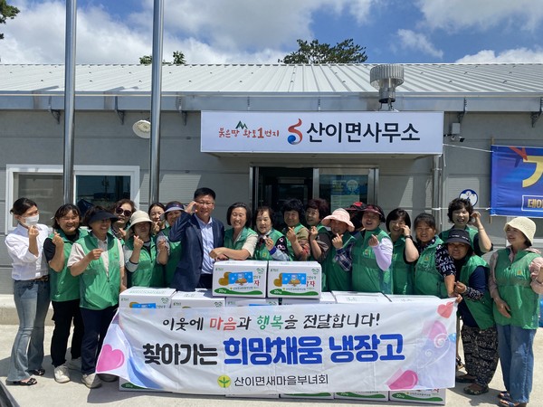 산이면새마을부녀회(회장 맹예호)는 지난 7월5일 산이면사무소에서 취약계층 20가구를 위한 찾아가는 채움 냉장고 전달 행사를 가졌다.