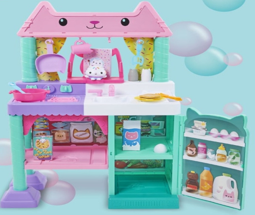 냉장고를 열면 음료와 주방 놀이 소품이 짠~!