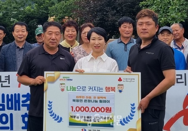 북평면 절임배추 생산자협의회(회장 김광수)는 지난 7월15일 북평면의 온정나눔 릴레이에 100만원을 기탁했다. 기탁된 성금은 선풍기를 구입해 취약계층에 전달 예정이다.