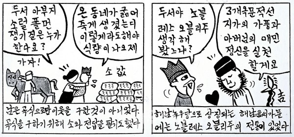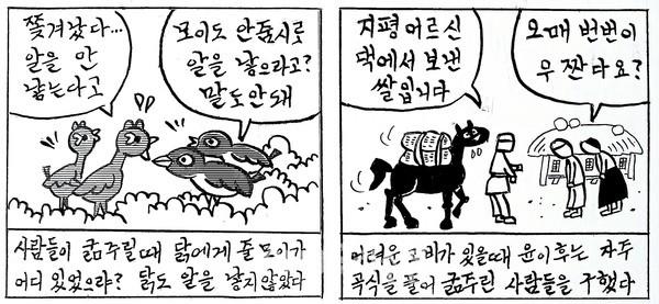 윤이후는 유배객들이 먹을 식량을 조달하고, 날마다 대문을 두드리는 배고픈 이웃의 메마른 손에 꼭 쥐어준다.