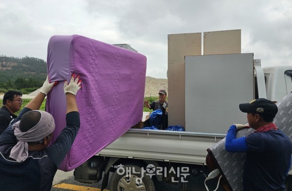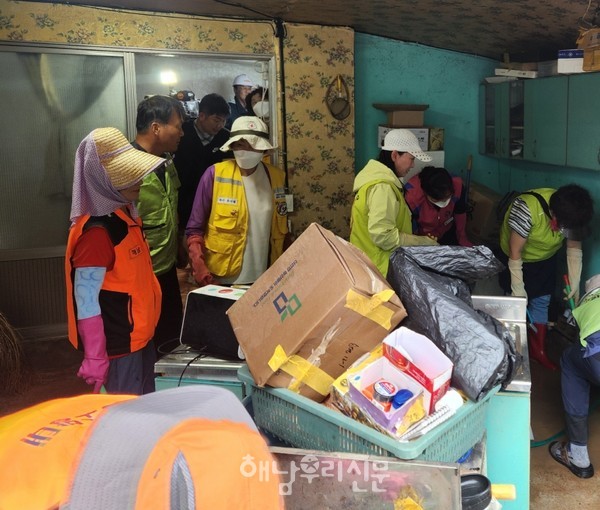 현산면 봉사단체, 너도나도 침수주택 봉사