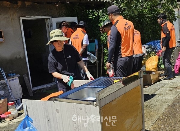 송지면 복지기동대와 의용소방대, 지역사회보장협의체는 지난 7월17일 침수된 주택 2가구를 찾아 복구에 힘을 보탰다.