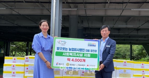 방긋웃는농업회사법인(대표 장진경)이 지난 8월1일 해남군에 찹쌀떡 4,000개를 기탁했다. 이날 기탁한 떡은 단호박을 이용한 유기농 찹쌀떡으로 사회복지시설 37개소에 바로 배부됐다. 방긋웃는농업회사법인은 지난 3월에도 찹쌀떡 5,500개를 기탁했고 해남등대원에 4년째 후원을 하고 있다.