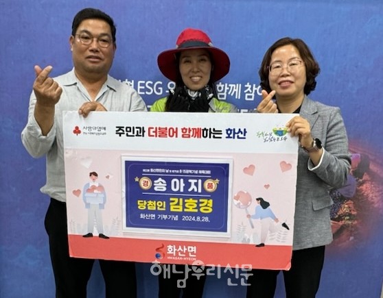 화산면 명금마을 김호경씨가 지난 8월28일 경품으로 받은 송아지를 판 금액 전체를 화산면에 기탁했다. 김호경씨는 지난 8월15일 열린 화산면민의 날 행사에서 1등에 당첨돼 송아지를 받은 바 있다. 기탁받은 금액은 화산면 지역사회보장협의체를 통해 지역 내 어려운 이웃들에게 지원될 예정이다.