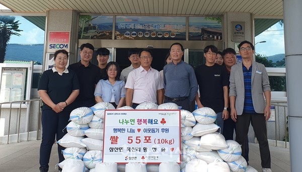 삼산면 목신마을 황정승씨가 올해도 변함없이 어려운 이웃을 위해 백미를 기탁했다. 황정승씨는 지난 12년 동안 매년 백미를 기증해 왔으며 올해는 550kg를 기증했다.