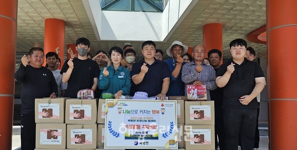 북평면 농민단체가 지난 8월27일 ‘북평면 온정나눔 릴레이’에 동참, 식료품과 생활용품이 담긴 60만원 상당의 꾸러미 20박스를 북평면에 기탁했다. ‘온정나눔 릴레이’는 북평면 주민들이 서로를 이해하고 지원하기 위해 시작된 북평면 특수시책으로, 현재까지 15명이 참여해 1,500만원 상당의 물품(금품)이 기탁됐다.