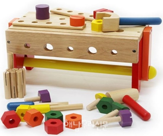 목재 공구를 이용해 뚝딱뚝딱 두드리고 끼우고