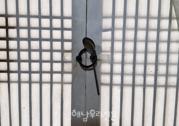 해남읍 복평리 김옥희씨 댁은 향토유적으로 지정된 오래된 한옥이다. 옛 한옥에서나 볼 수 있는 숟가락 잠금, 해남에선 좀처럼 보기드문 추억의 모습이다. 해남우리신문 webmaster@hnwoori.com 다른기사 보기 저작권자 © 해남우리신문 무단전재 및 재배포 금지 당신만 안 본 뉴스 명찰보고 너 누구구나…55년 만에 재회 | 뿌리깊은 해남이야기 97 | 해남 땅이름 유래 (8) 북일면편 내년 지방선거, 도의원 선거구 바뀌나 곧 터질거라 했다… J프로젝트 관광도시 대통령도 움직였다 대대적인 노선 개편, 서부권 목포 구간 증설 요구 해남 청년들의 3중주 가을 음악회 가래떡·뻥튀기 나누며 우리쌀 소비운동 명찰보고 너 누구구나…55년 만에 재회 댓글삭제 삭제한 댓글은 다시 복구할 수 없습니다. 그래도 삭제하시겠습니까? 비밀번호 닫기 기사 댓글 0 댓글 접기 로그인 후 이용 가능합니다. 댓글 내용입력 비회원 로그인 이름 비밀번호 댓글 내용입력 댓글쓰기 계정을 선택하시면 로그인·계정인증을 통해 댓글을 남기실 수 있습니다. 회원 로그인 비회원 글쓰기 이름 비밀번호 자동등록방지 로그인 옵션 창닫기 주요기사 읍 공동화 막자…12월 초 민관협의체 발족 448억 태양광 패널 재처리시설, 국비 100% 해달라 대대적인 노선 개편, 서부권 목포 구간 증설 요구 이병연 유기농 명인, 햅쌀 500kg 기탁 나의 직책은 마을청년회장, 윤채현 전 교장 토요일에 땅끝 오세요…흥겨운 음악에 수산물 직거래 장터