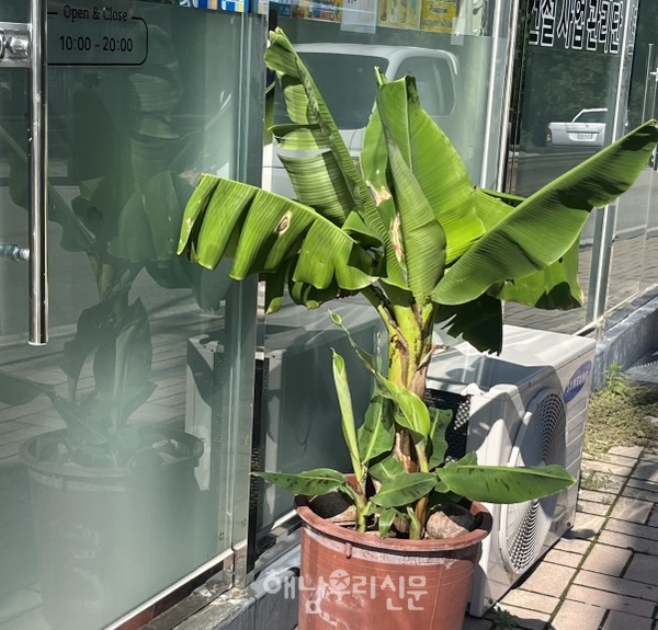 북평면 남창에 문을 연 필리핀 식품점 ‘페라플러스’ 앞에는 바나나 나무가 손님을 반긴다. 친구에게 개업축하 선물로 받은 게 가게와 어울리는 바나나 나무란다.