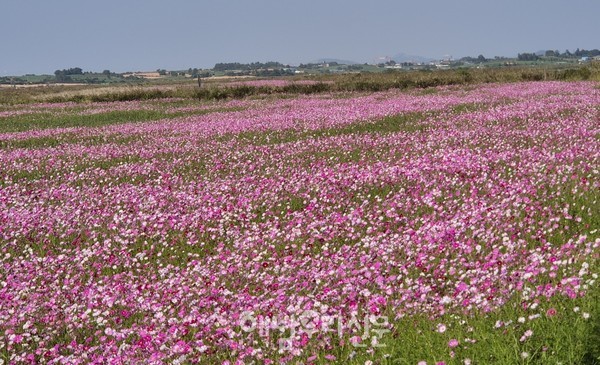 산이면 대진리 간척지 일대(산이면 대진리 1269 일원)에 18ha 면적의 코스모스 꽃단지가 만개했다. 코스모스 꽃단지는 2022년부터 산이면과 산이면 이장단이 간척지에 쓰레기 무단투기 및 불법퇴비 적치를 방지하고자 ‘클린 산이 만들기 프로젝트’ 일환으로 추진됐다. 산이면 이윤호 이장단장은 “8월 초, 바쁜 영농기에도 불구하고 산이면 40개 마을 이장님들께서 성심성의껏 도와주신 노고에 힘입어 오늘 코스모스가 활짝 필 수 있었다”며 “지나가는 길에 들러 힐링하시기 바란다”고 전했다.