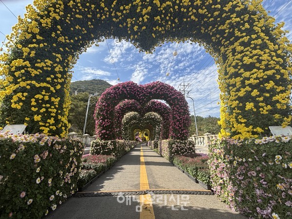 가을바람 따라 국화가 길손을 맞는다. 땅끝 꽃 축제는 해남미남축제 인근 두륜산 도립공원 일대에서 열린다. 현장에는 공룡 캐릭터 등 조형물을 활용한 5개의 테마존이 마련돼 오는 11월22일까지 관객을 맞는다.