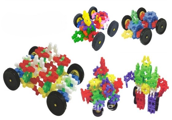 굴러가는 모형도 만들 수 있도록 원형 바퀴도 들어있으며 블록을 안전하게