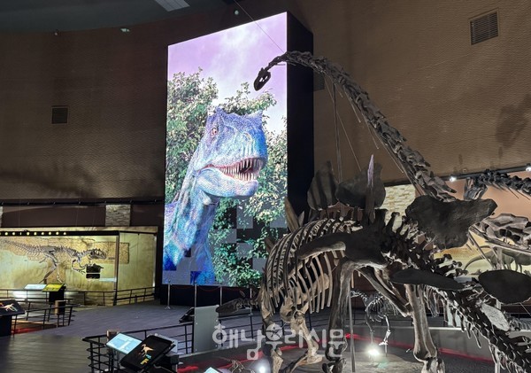 해남군은 올해 ‘체험형 관광 융복합 콘텐츠 개발 지원사업’ 공모에 선정돼 알로사우루스 화석을 활용한 디지털 전시 공간을 구축했다. 알로사우루스는 쥐라기를 대표하는 육식공룡으로 공룡을 좋아하는 사람이라면 누구나 알고 있는 간판스타이다.
