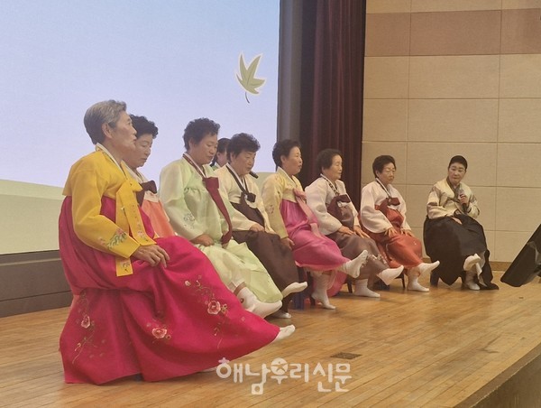 1990년대 외발치기 강강술래로 호남을 누볐던 해남읍 고도리 강강술래, 세월이 흘러 80~90대 이른 고도리 어르신들이 30대~40대 윽씬윽씬 뛰었던 외발치기 강강술래를 의자에 앉아서 선보였다. 격세지감, 그러나 몸은 여전히 강강술래를 기억하고 있다.