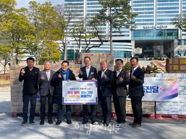 해남군은 지난 11월29일 대중소기업 농어업협력재단, (사)희망을 나누는 사람들, LG생활건강으로부터 6,000만원 상당의 생활용품을 기탁받았다. 이번 기탁은 박지원 국회의원이 대중소기업 농어업협력재단과 (사)희망을 나누는 사람들에 해남군을 지정해 후원해 줄 것을 요청해 이뤄졌다.