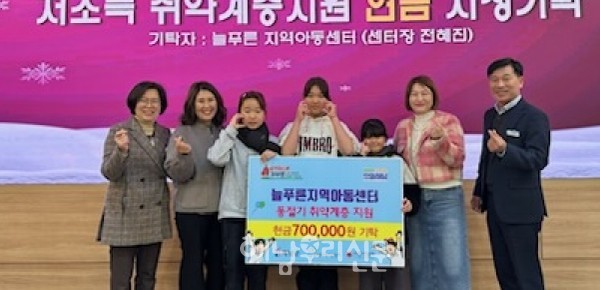 늘푸른지역아동센터(센터장 전혜진)는 12월10일 성금 70만원을 해남군에 기탁했다. 성금은 지난 10월11일 아임빈커피 카페에서 개최된 ‘늘푸른이 캘리그라피 전시회’ 및 1일 찻집 수익금이다.