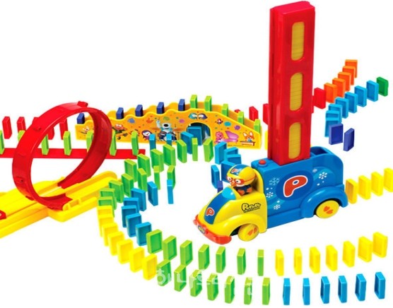 뽀로로 자동차에 도미노 칩을 넣으면 자동으로