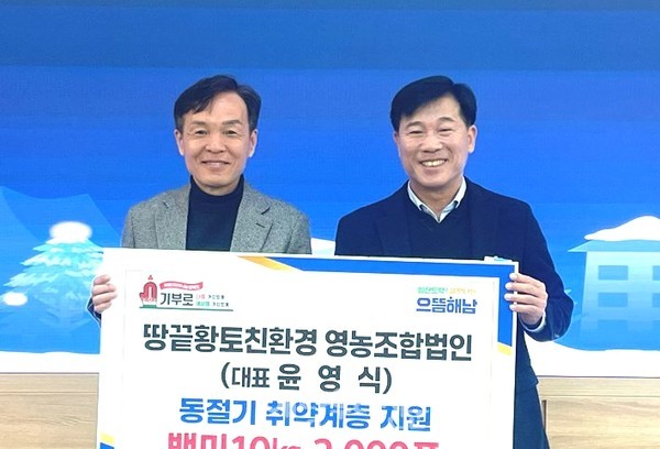 땅끝황토친환경 영농조합법인(대표 윤영식)이 지난 12월19일 희망2025 나눔캠페인에 동참하기 위해 백미(10㎏) 2,000포를 해남군에 전달했다. 지역경제가 좋지 않은 상황에 이웃들에게 힘을 주고자 기부에 나선 것으로 기탁된 물품은 관내 저소득 취약계층에게 전달됐다.