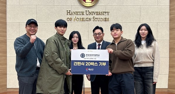 한국외국어대학교의 ‘맛있구마’ 팀이 지난해 12월20일 라면 20박스를 기탁했다, 이번 기탁은 한국외국어대학교 GBT학부 ‘E-마케팅’ 수업(담당교수 조명환)에서 학생들이 스마트스토어와 쿠팡을 통해 해남 꿀고구마를 판매한 수익금이다.